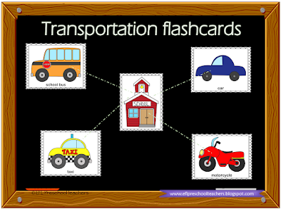 all the same kind of transportation flashcards on the board. Say a model